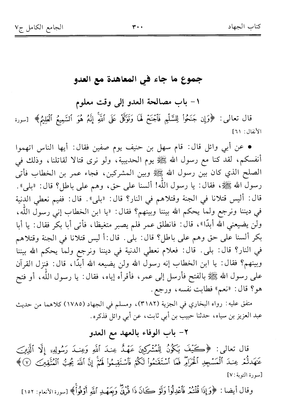 كتاب الجامع الكامل في الحديث الصحيح الشامل المرتب على أبواب الفقه (اسم الجزء: 7)