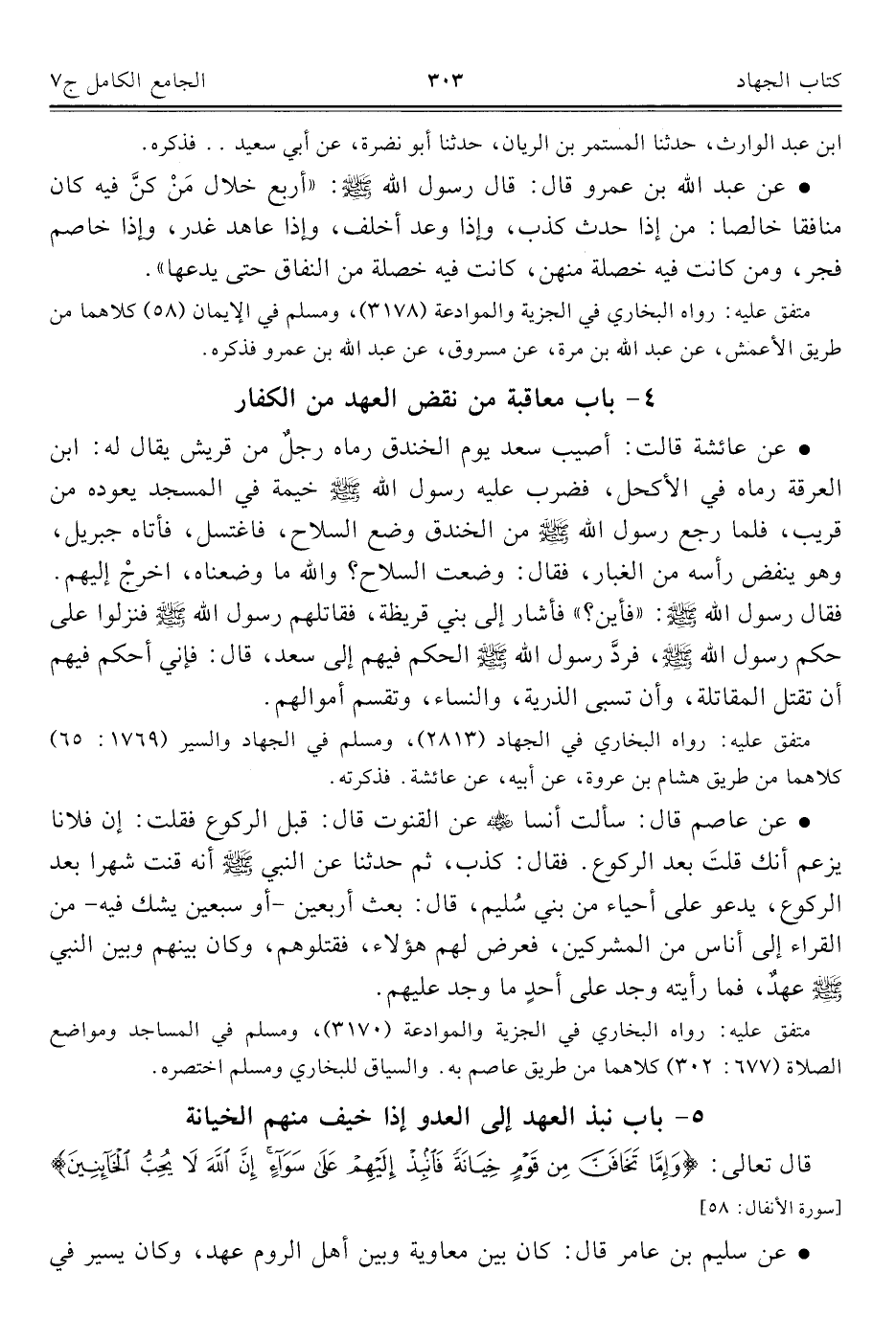 كتاب الجامع الكامل في الحديث الصحيح الشامل المرتب على أبواب الفقه (اسم الجزء: 7)