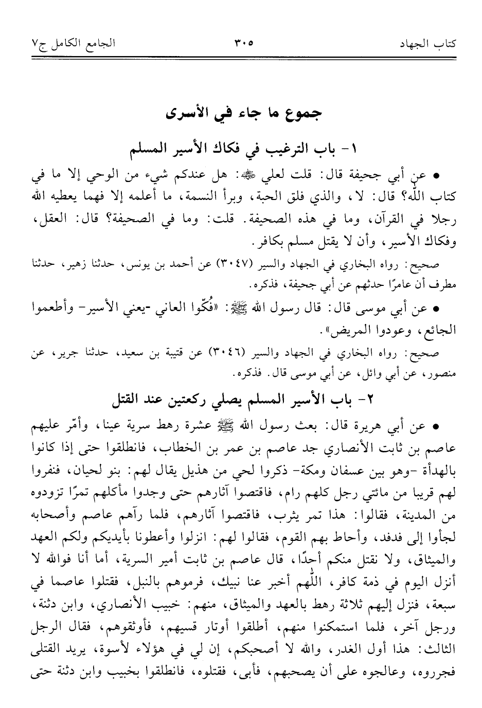 كتاب الجامع الكامل في الحديث الصحيح الشامل المرتب على أبواب الفقه (اسم الجزء: 7)