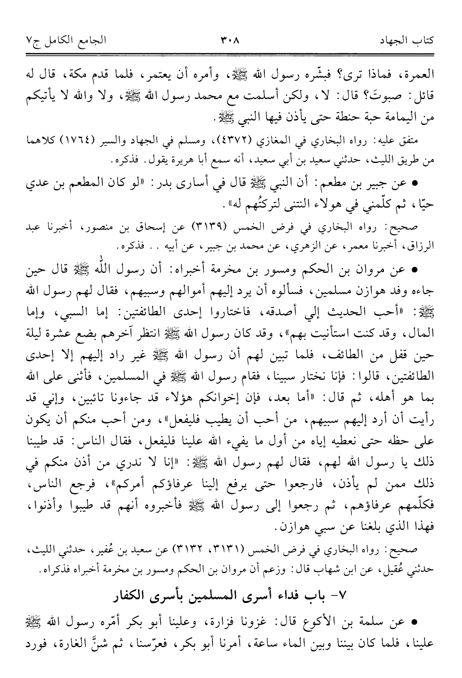 كتاب الجامع الكامل في الحديث الصحيح الشامل المرتب على أبواب الفقه (اسم الجزء: 7)