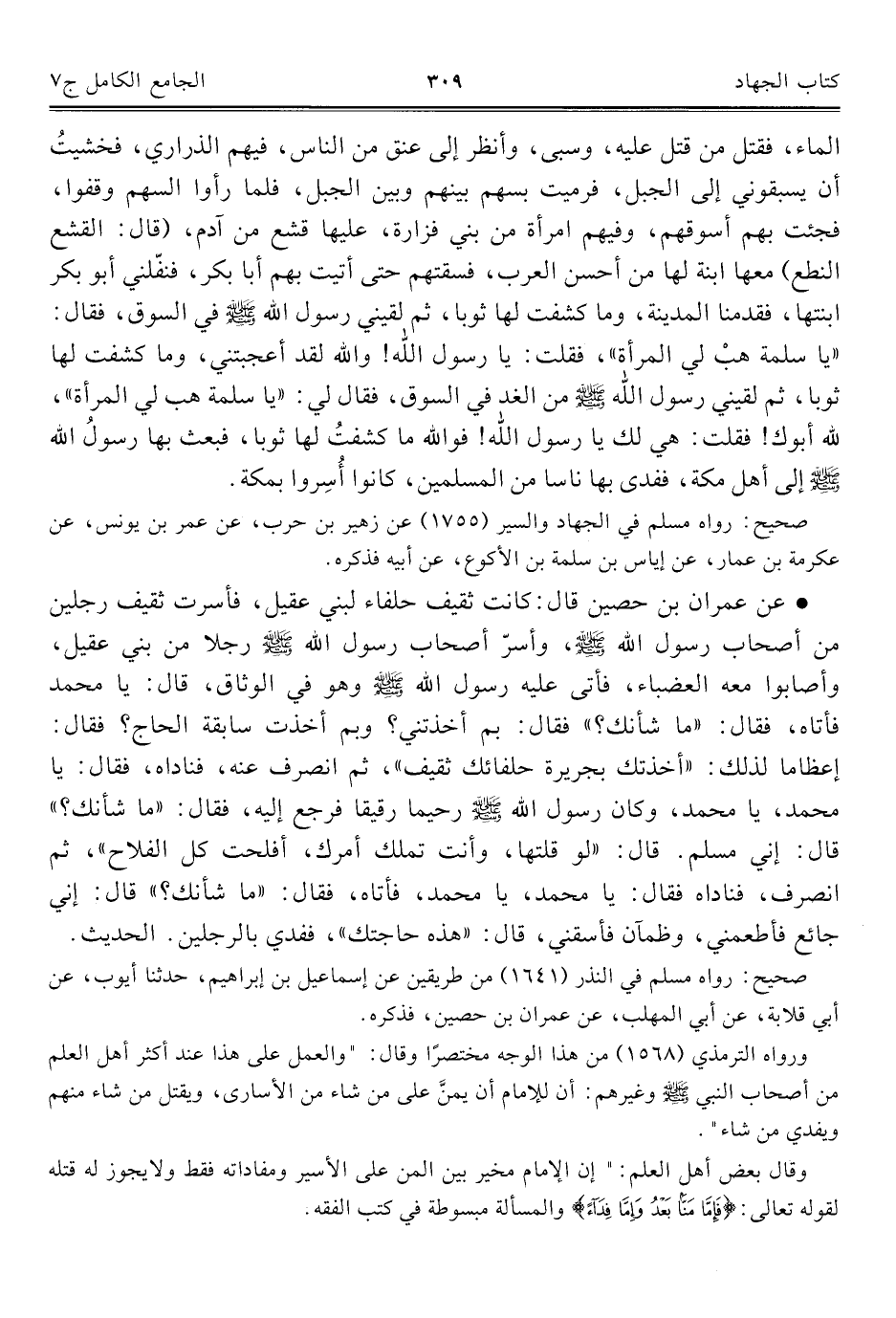 كتاب الجامع الكامل في الحديث الصحيح الشامل المرتب على أبواب الفقه (اسم الجزء: 7)