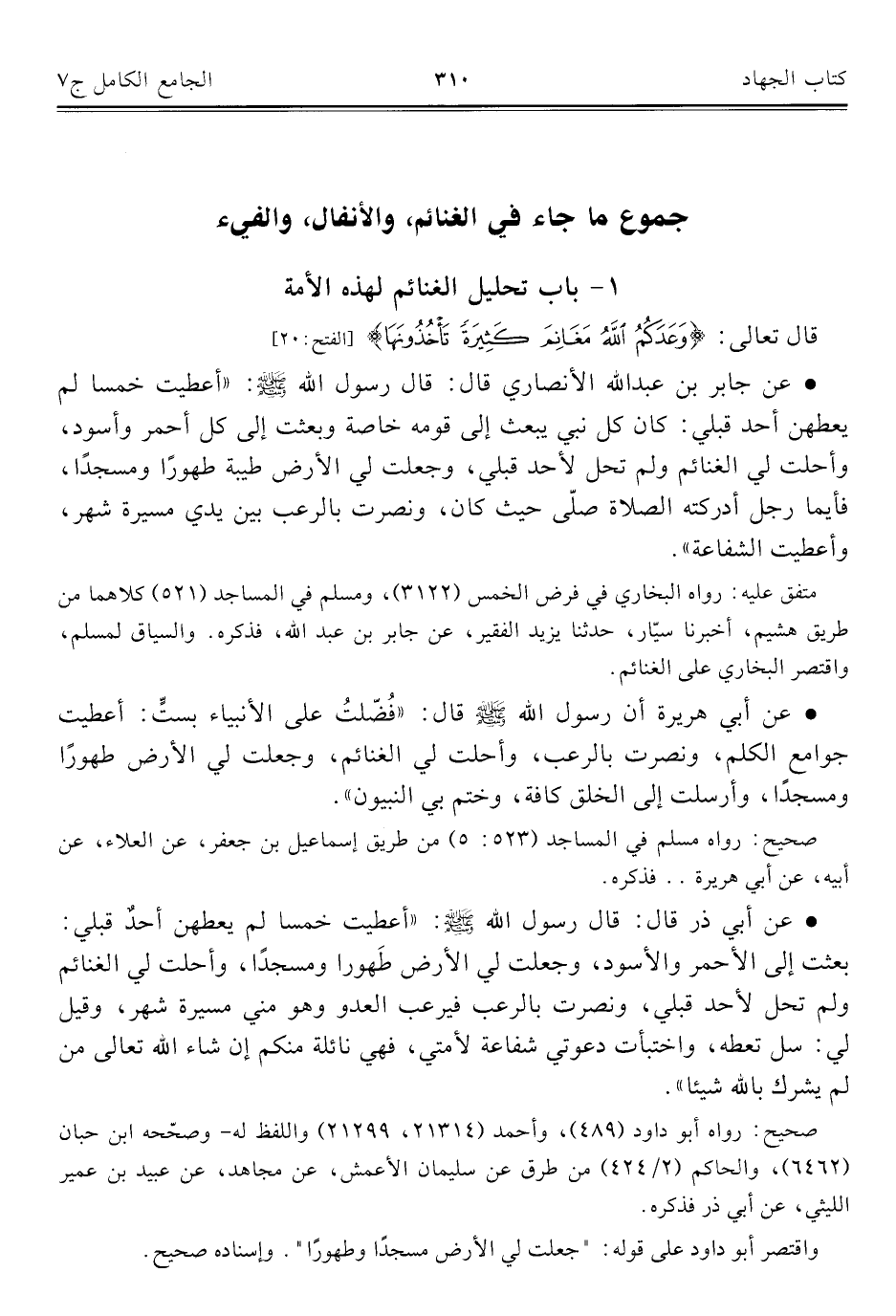 جموع ما جاء في الغنائم، والأنفال، والفيء