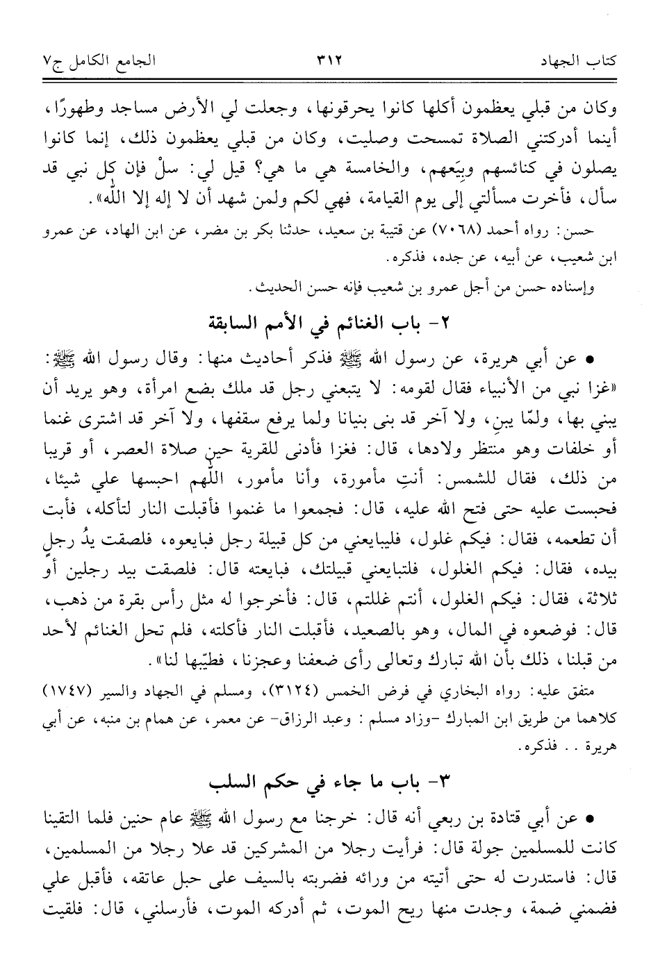 كتاب الجامع الكامل في الحديث الصحيح الشامل المرتب على أبواب الفقه (اسم الجزء: 7)