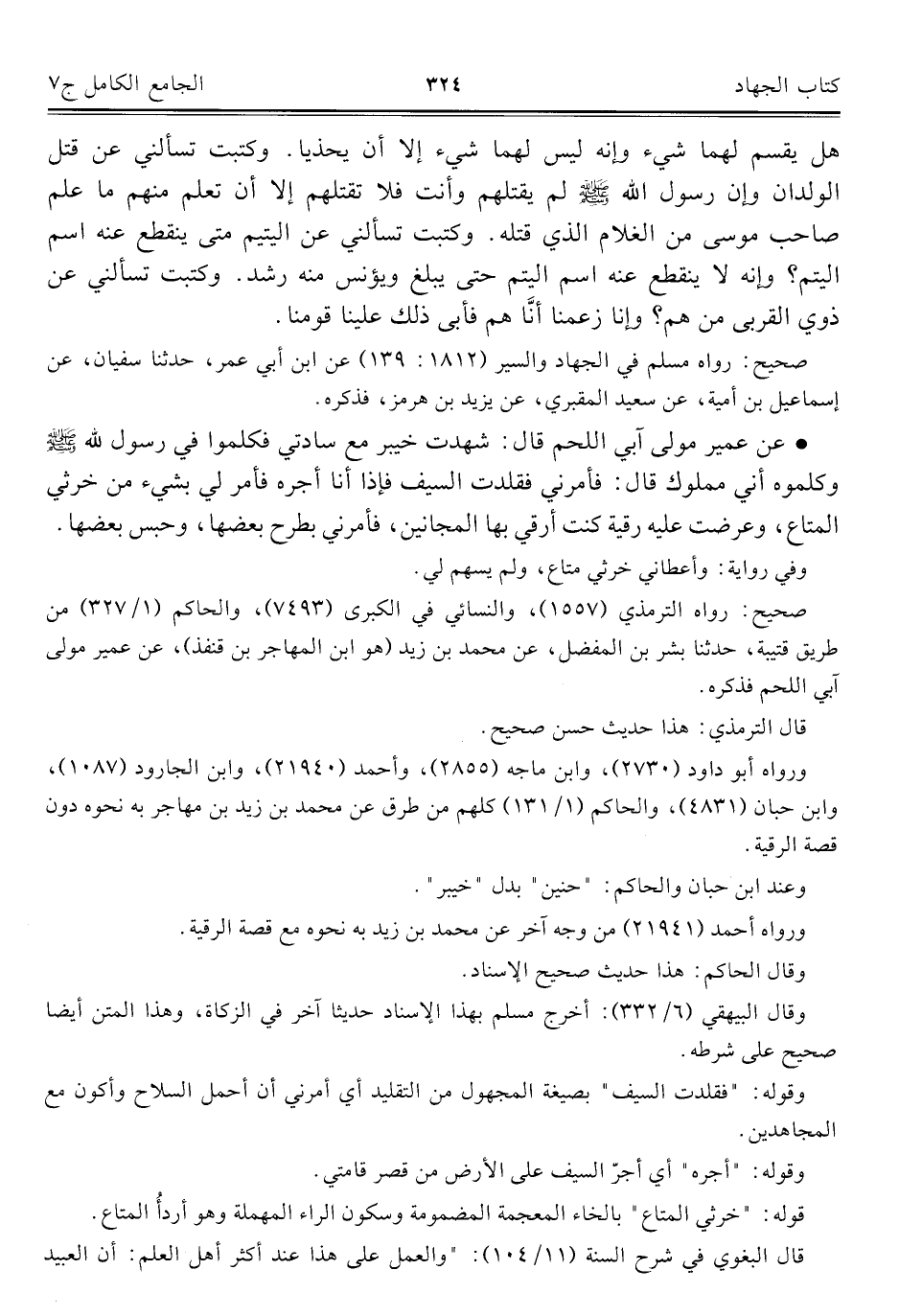 كتاب الجامع الكامل في الحديث الصحيح الشامل المرتب على أبواب الفقه (اسم الجزء: 7)