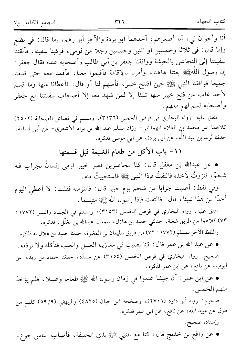 كتاب الجامع الكامل في الحديث الصحيح الشامل المرتب على أبواب الفقه (اسم الجزء: 7)