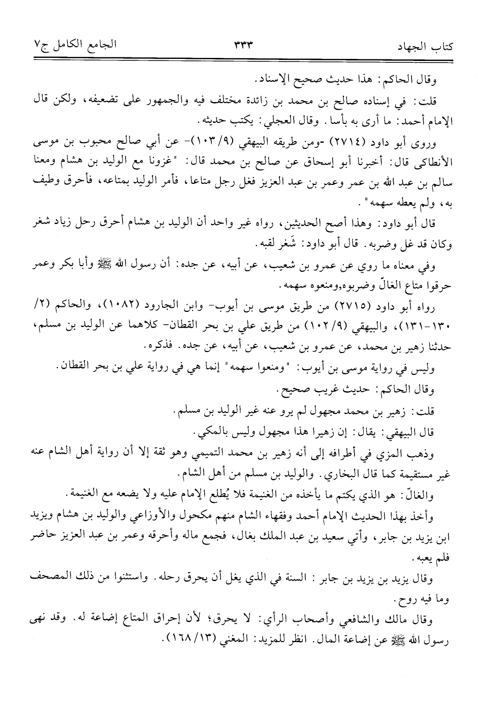 وأخذ بهذا الحديث الإمام أحمد وفقهاء الشام منهم مكحول والأوزاعي والوليد بن هشام ويزيد بن يزيد بن جابر، وأتي سعيد بن عبد الملك بغال، فجمع ماله وأحرقه وعمر بن عبد العزيز حاضر فلم يعبه.