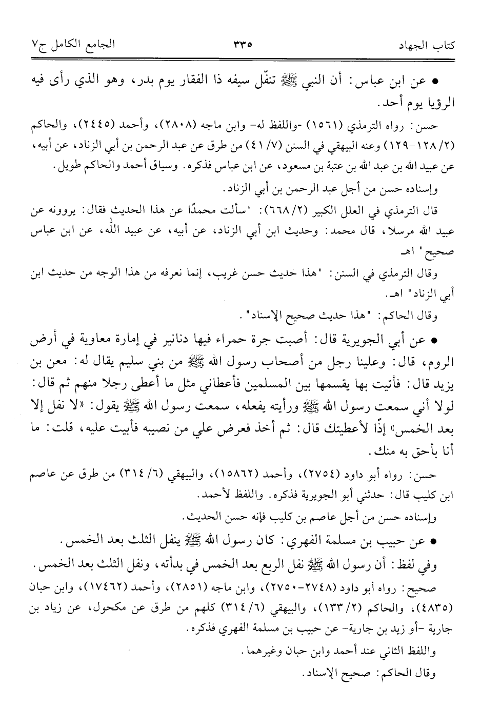 كتاب الجامع الكامل في الحديث الصحيح الشامل المرتب على أبواب الفقه (اسم الجزء: 7)
