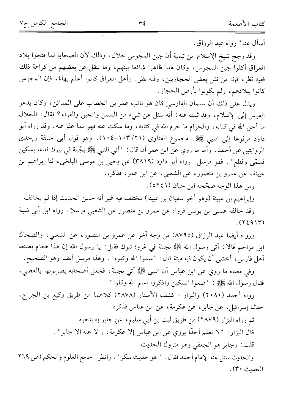 كتاب الجامع الكامل في الحديث الصحيح الشامل المرتب على أبواب الفقه (اسم الجزء: 7)
