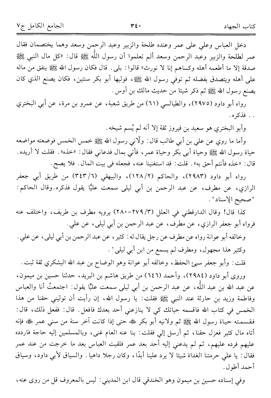 كتاب الجامع الكامل في الحديث الصحيح الشامل المرتب على أبواب الفقه (اسم الجزء: 7)