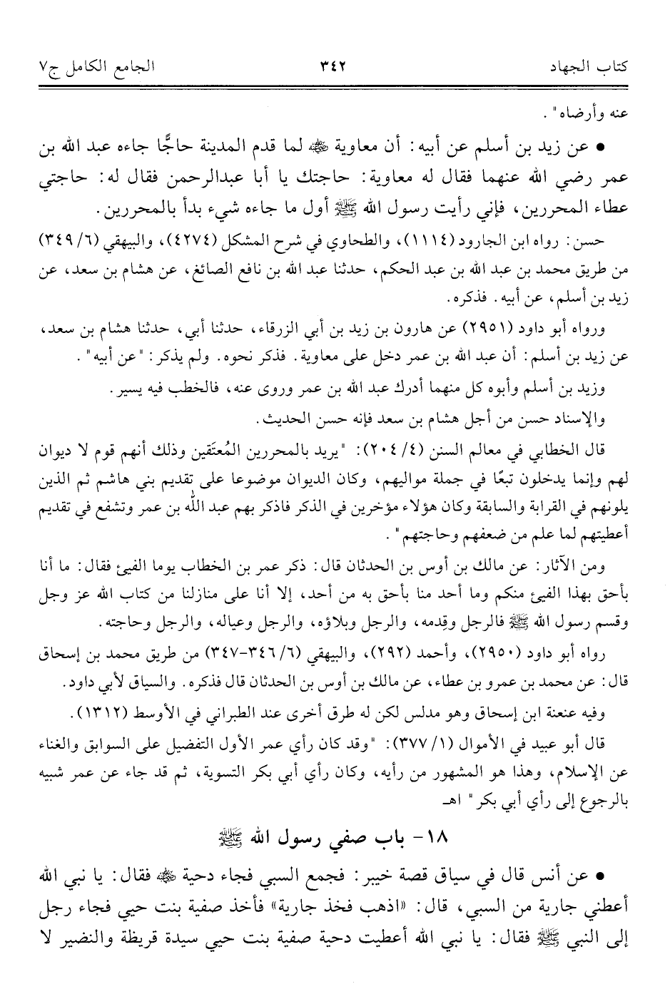 كتاب الجامع الكامل في الحديث الصحيح الشامل المرتب على أبواب الفقه (اسم الجزء: 7)