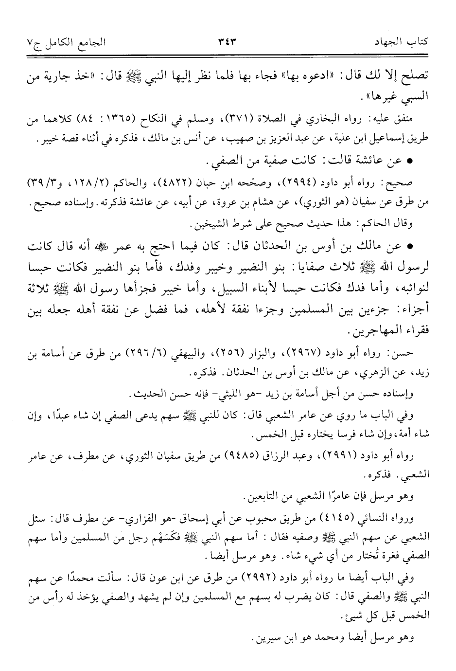 كتاب الجامع الكامل في الحديث الصحيح الشامل المرتب على أبواب الفقه (اسم الجزء: 7)