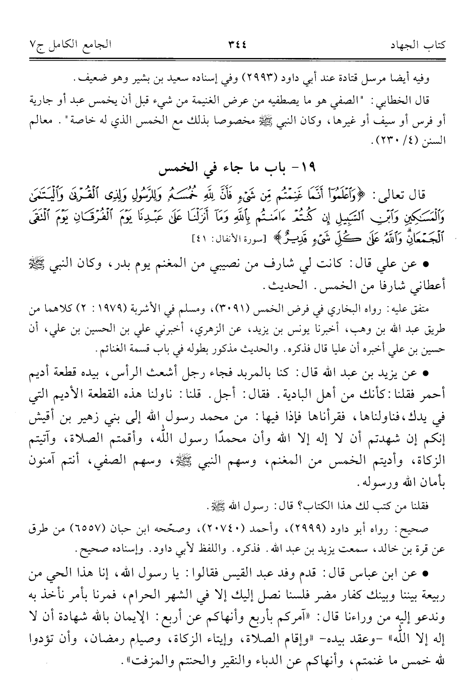 كتاب الجامع الكامل في الحديث الصحيح الشامل المرتب على أبواب الفقه (اسم الجزء: 7)