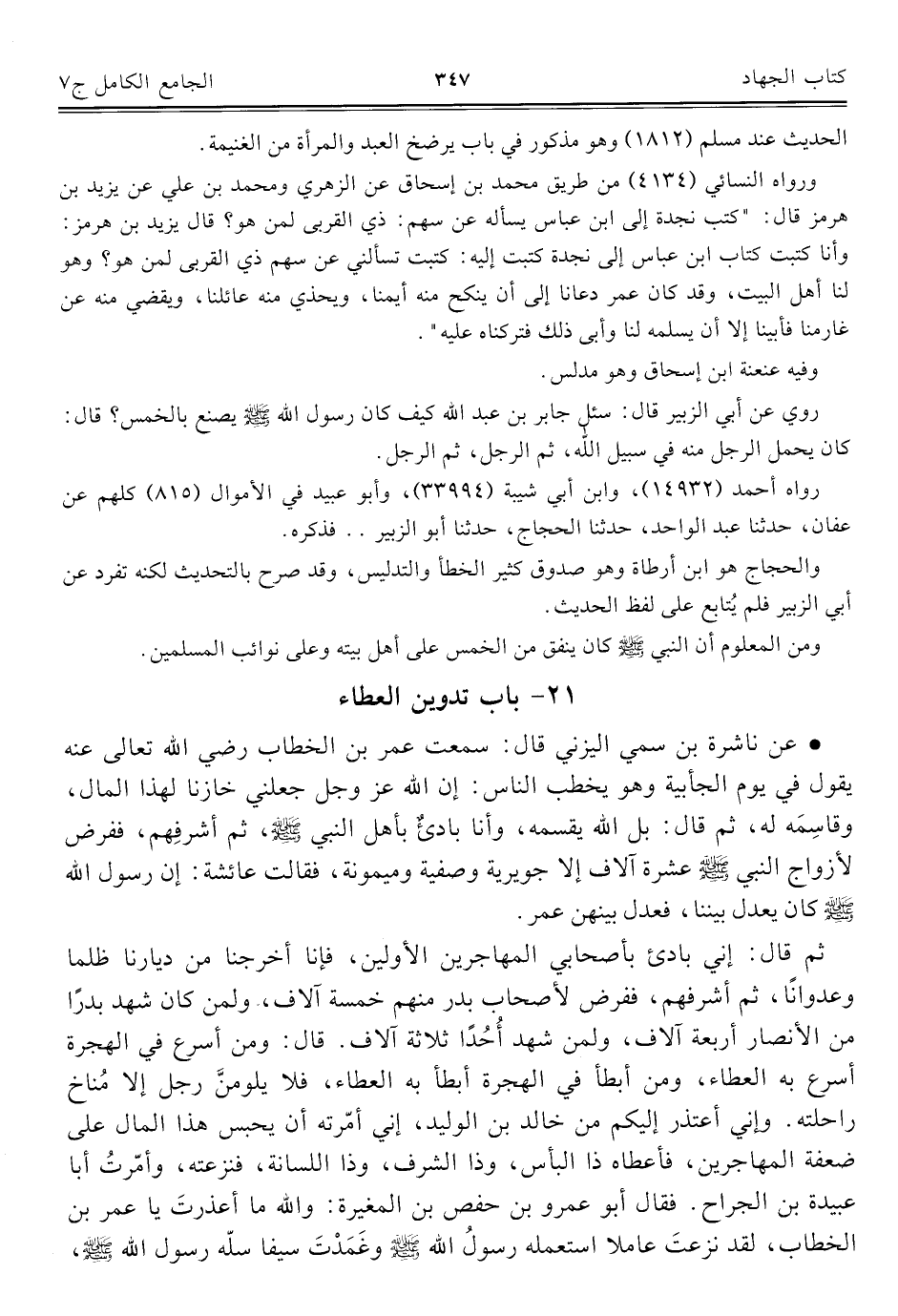 كتاب الجامع الكامل في الحديث الصحيح الشامل المرتب على أبواب الفقه (اسم الجزء: 7)