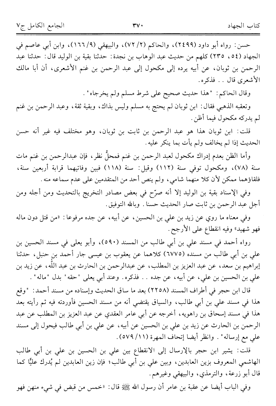 كتاب الجامع الكامل في الحديث الصحيح الشامل المرتب على أبواب الفقه (اسم الجزء: 7)