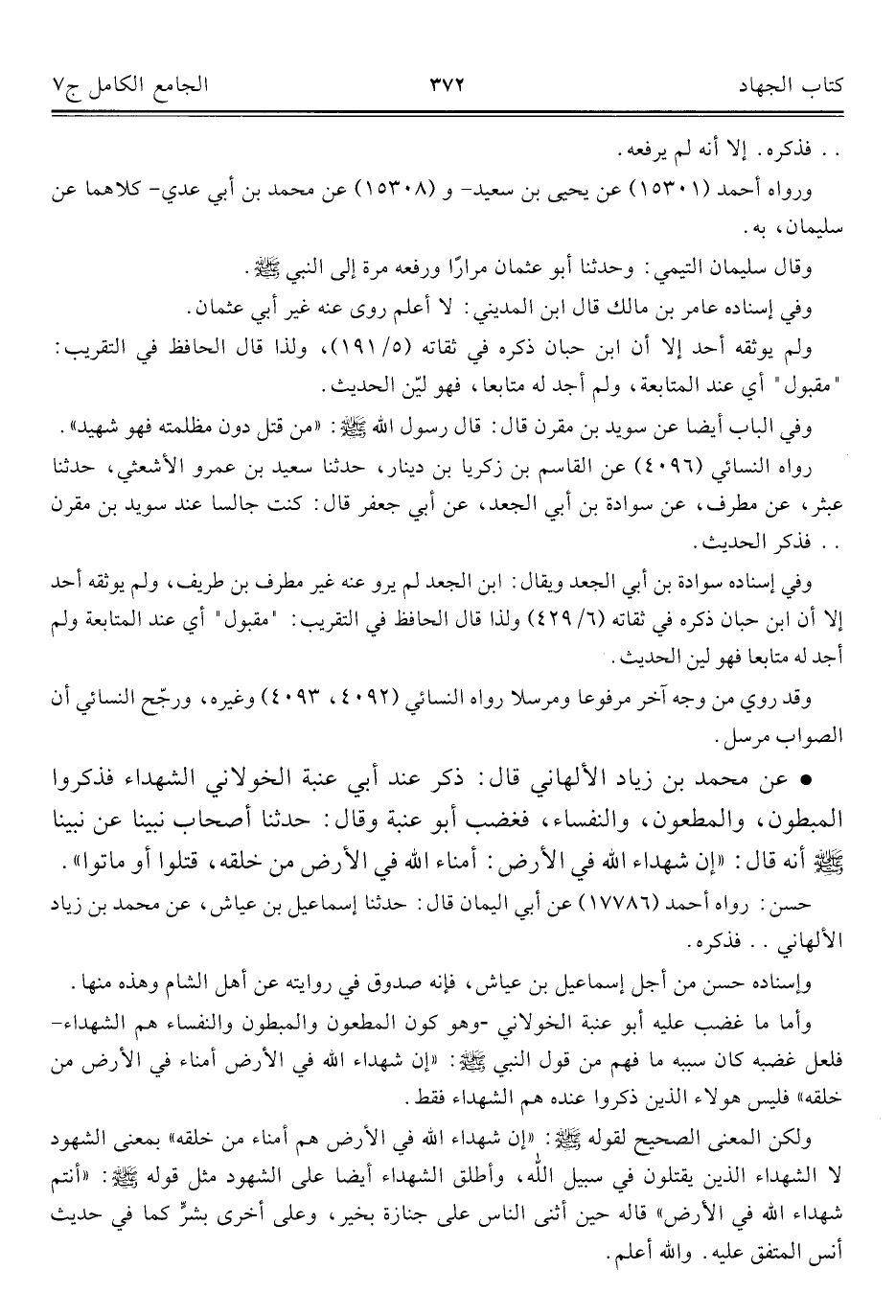 كتاب الجامع الكامل في الحديث الصحيح الشامل المرتب على أبواب الفقه (اسم الجزء: 7)