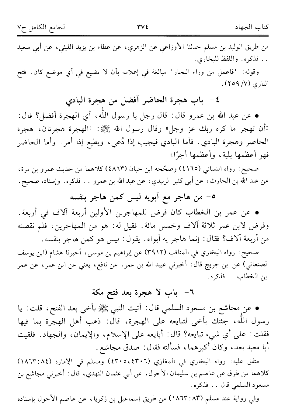 كتاب الجامع الكامل في الحديث الصحيح الشامل المرتب على أبواب الفقه (اسم الجزء: 7)