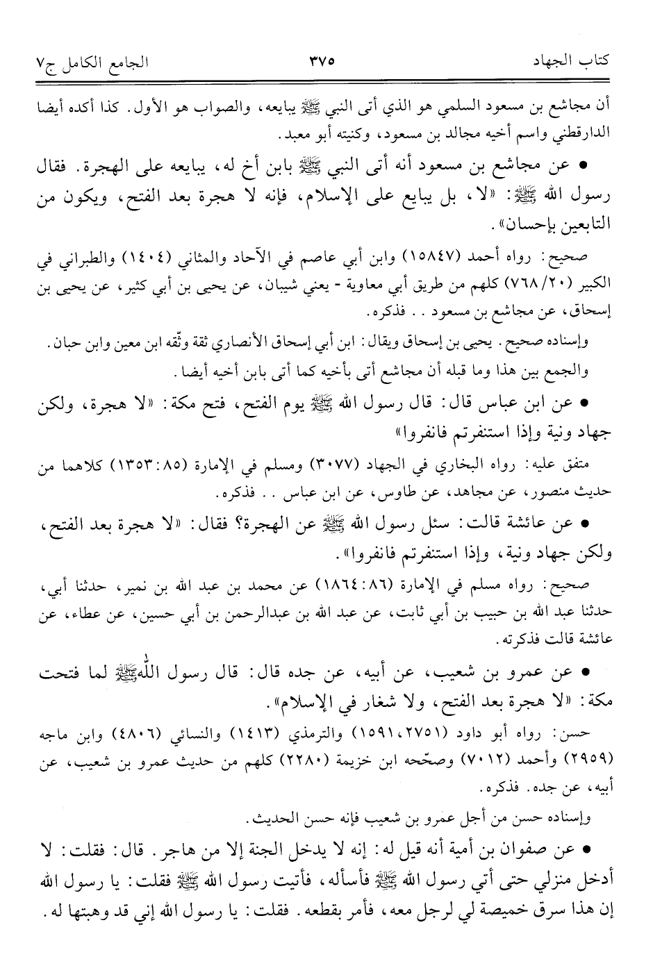 كتاب الجامع الكامل في الحديث الصحيح الشامل المرتب على أبواب الفقه (اسم الجزء: 7)