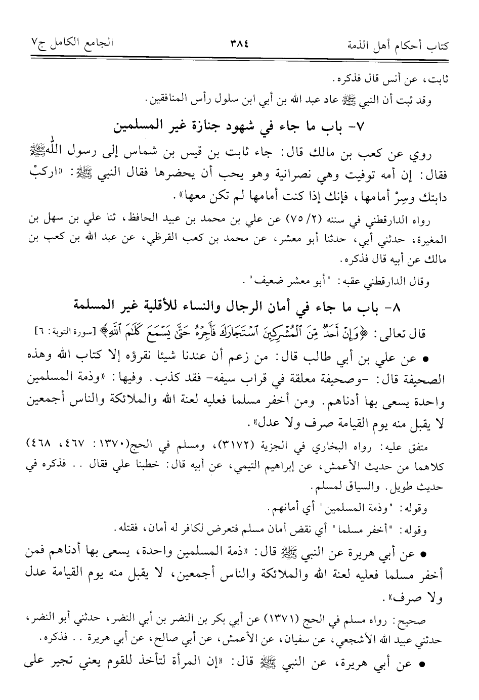 كتاب الجامع الكامل في الحديث الصحيح الشامل المرتب على أبواب الفقه (اسم الجزء: 7)