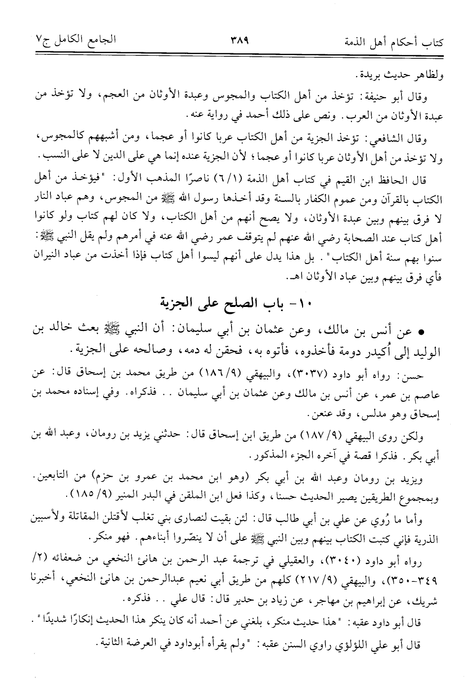 كتاب الجامع الكامل في الحديث الصحيح الشامل المرتب على أبواب الفقه (اسم الجزء: 7)