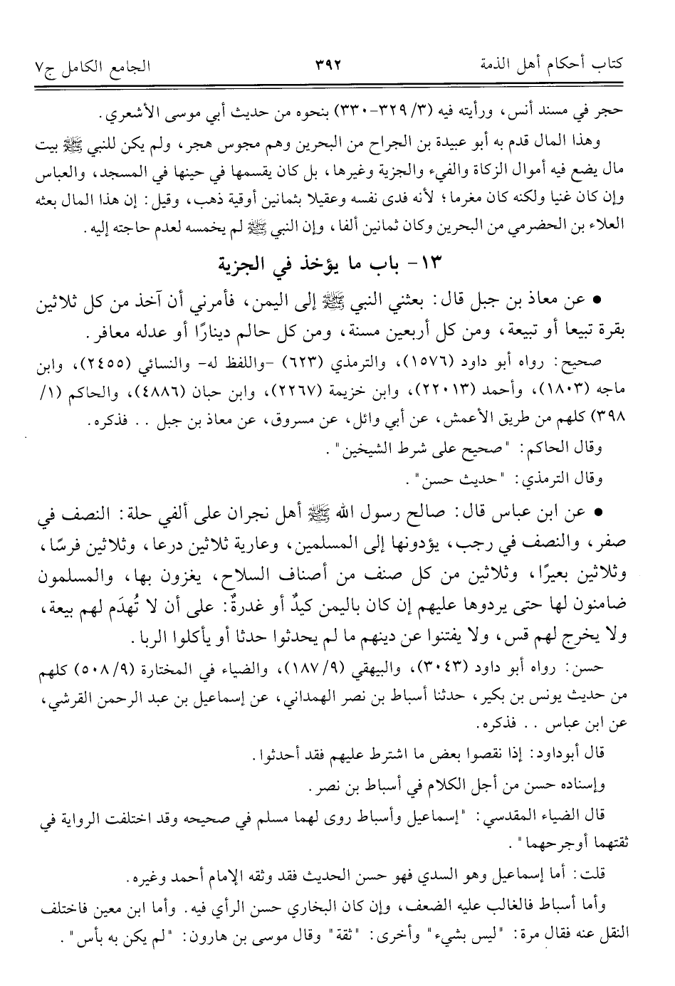 كتاب الجامع الكامل في الحديث الصحيح الشامل المرتب على أبواب الفقه (اسم الجزء: 7)