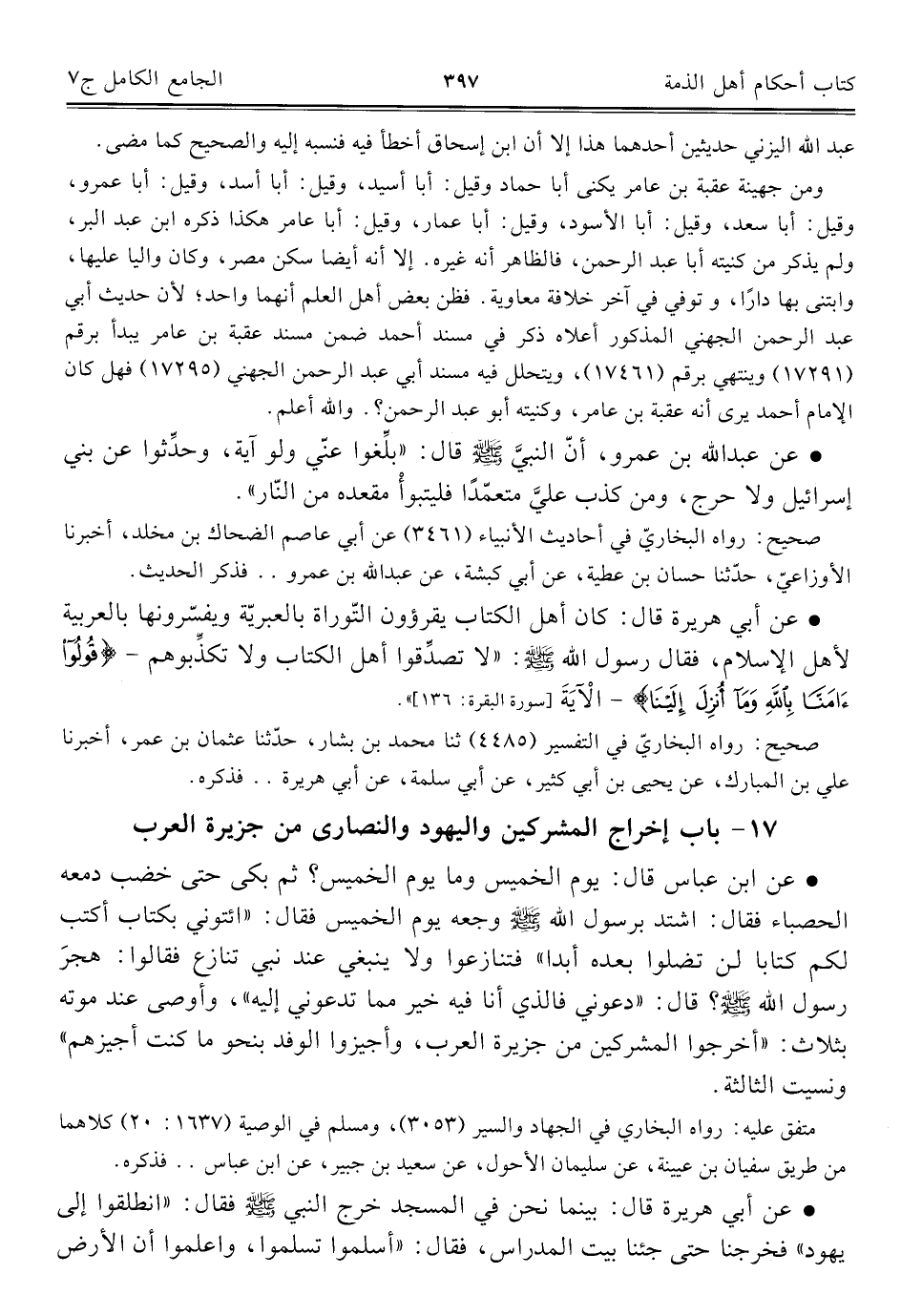 ١٧ - باب إخراج المشركين واليهود والنصارى من جزيرة العرب