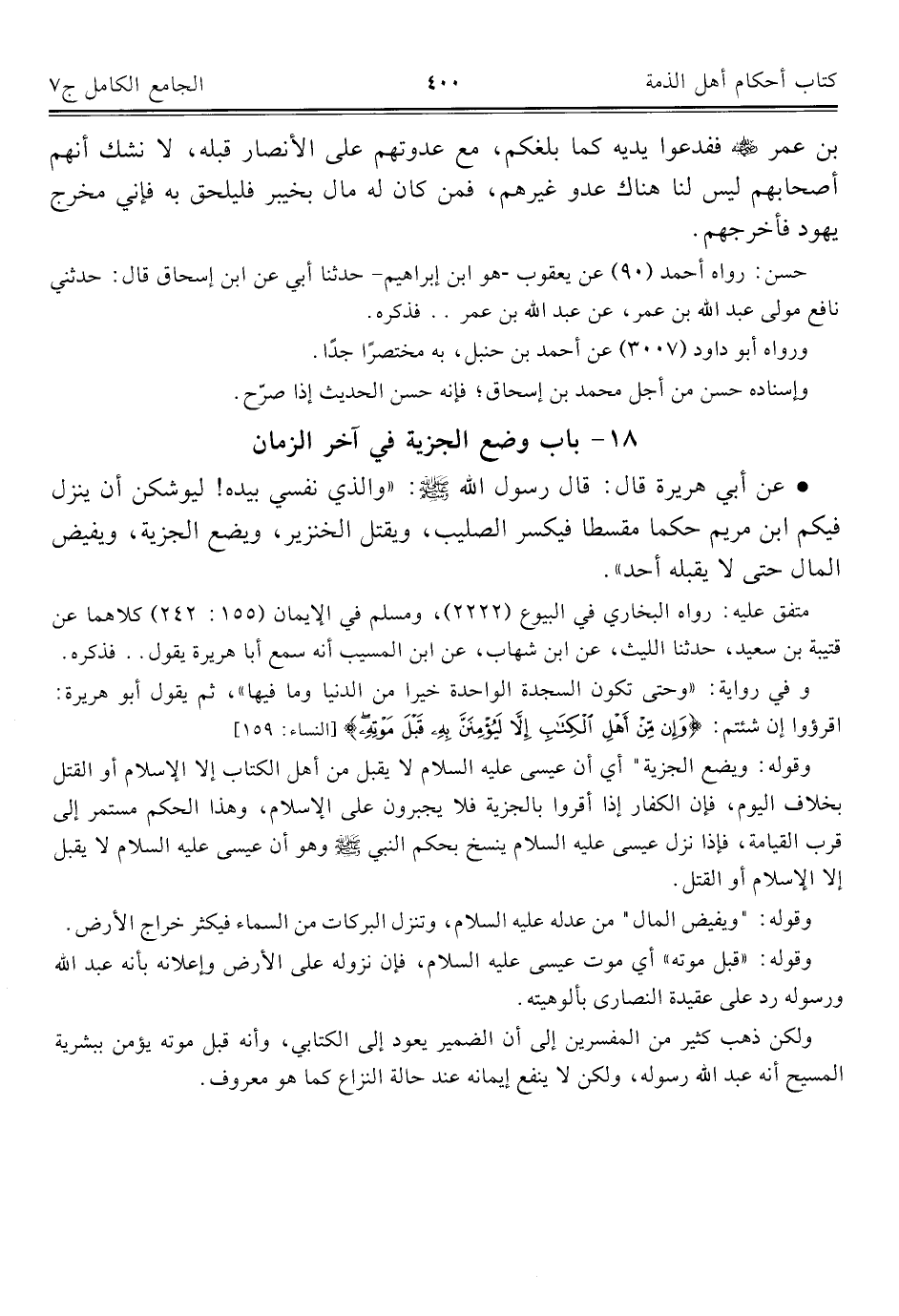 كتاب الجامع الكامل في الحديث الصحيح الشامل المرتب على أبواب الفقه (اسم الجزء: 7)