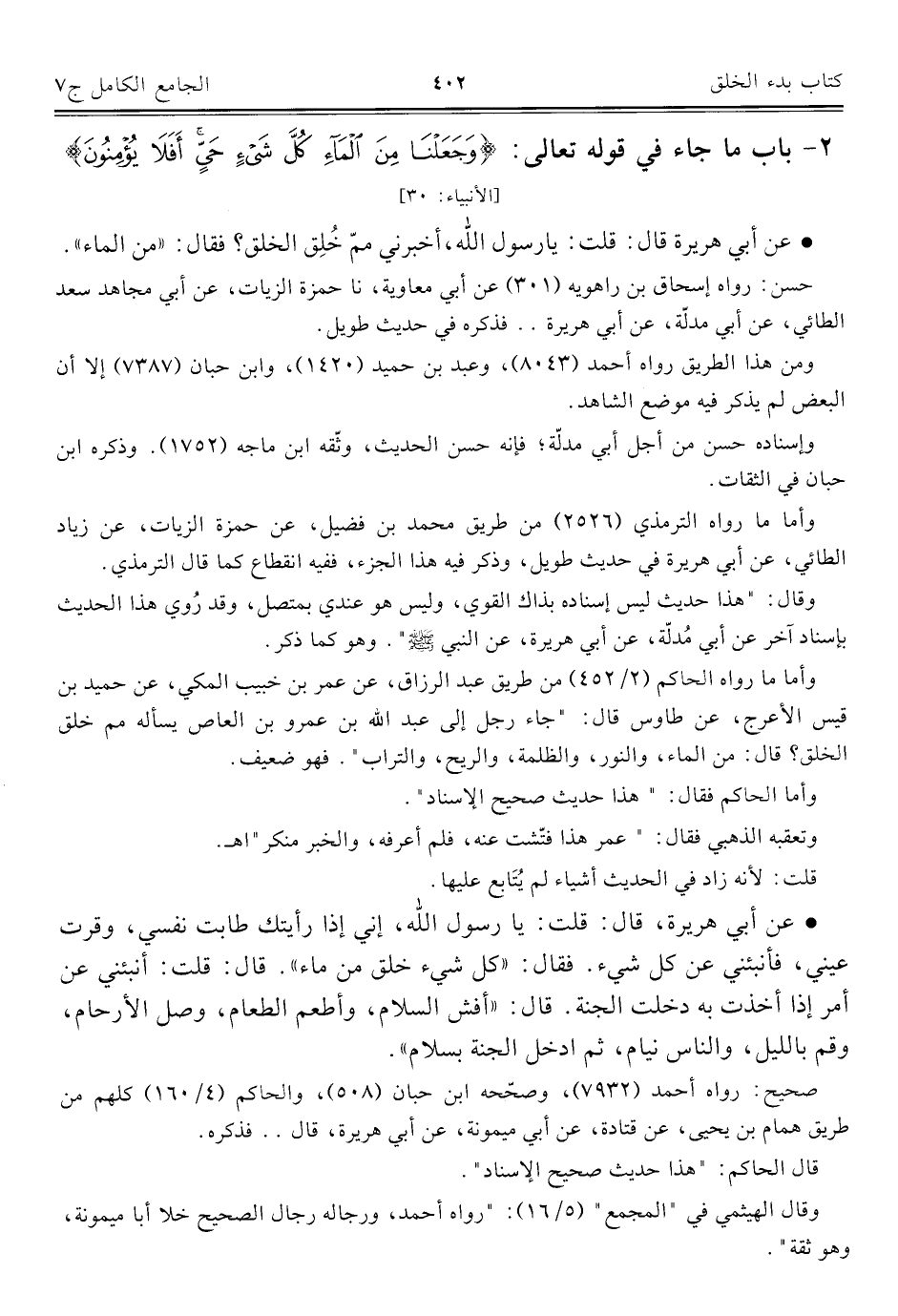 ٢ - باب ما جاء في قوله تعالى: {وَجَعَلْنَا مِنَ الْمَاءِ كُلَّ شَيْءٍ حَيٍّ أَفَلَا يُؤْمِنُونَ} [الأنبياء: ٣٠]