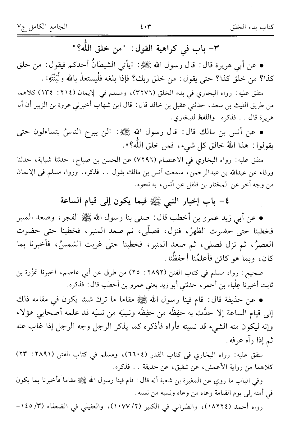 ٣ - باب في كراهية القول: "من خلق الله؟ "