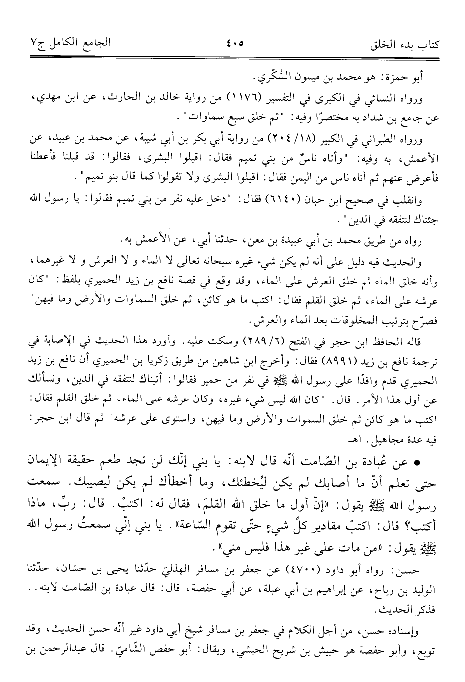 كتاب الجامع الكامل في الحديث الصحيح الشامل المرتب على أبواب الفقه (اسم الجزء: 7)