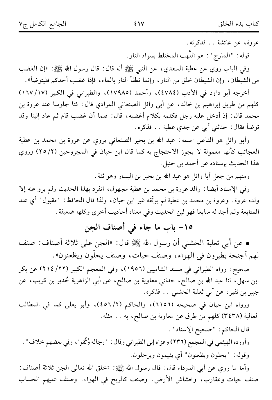 كتاب الجامع الكامل في الحديث الصحيح الشامل المرتب على أبواب الفقه (اسم الجزء: 7)