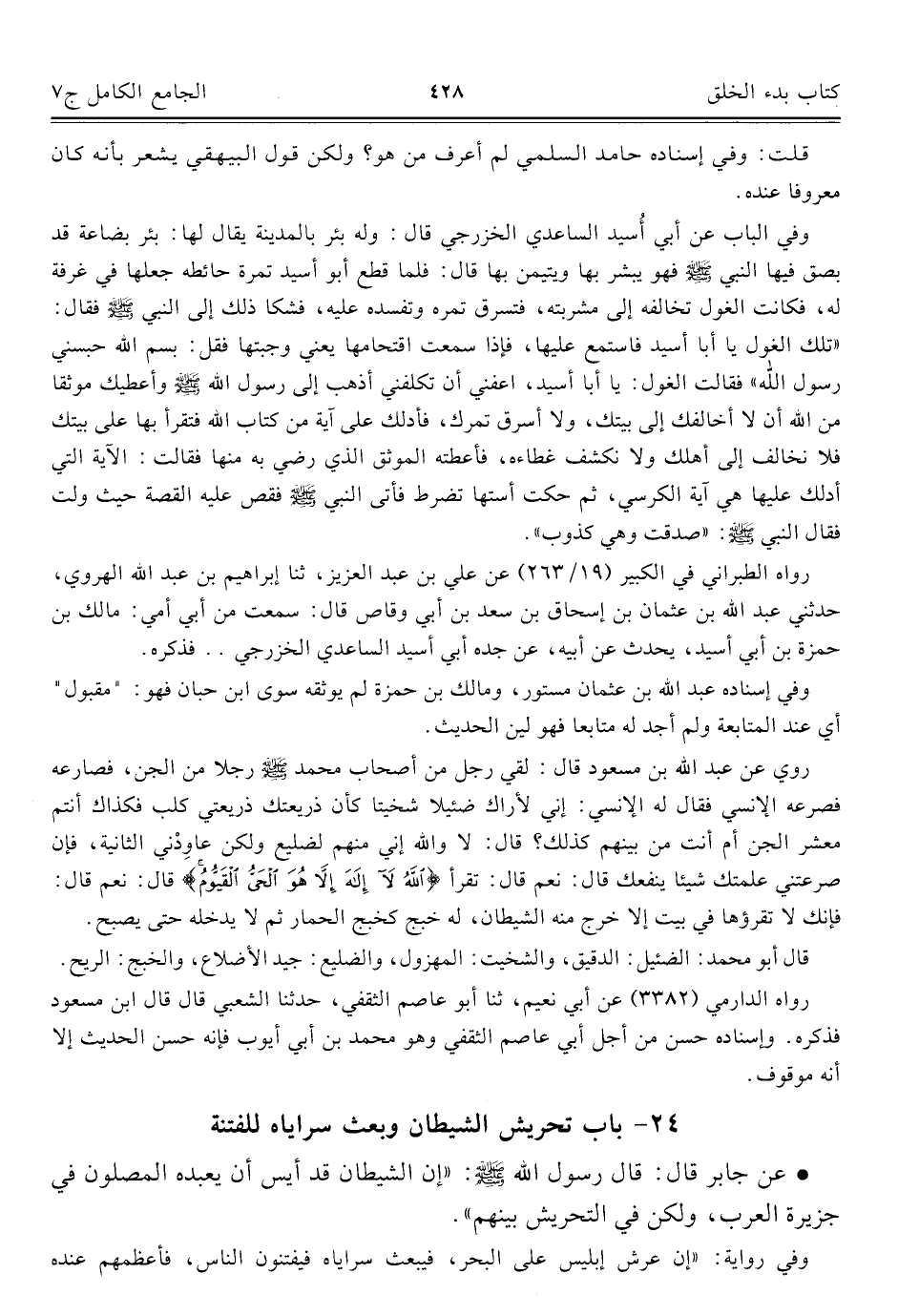 كتاب الجامع الكامل في الحديث الصحيح الشامل المرتب على أبواب الفقه (اسم الجزء: 7)