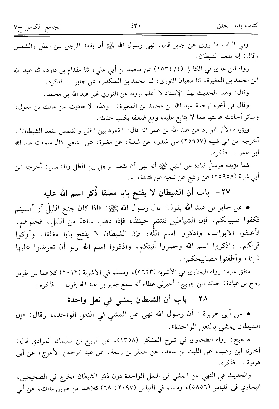 كتاب الجامع الكامل في الحديث الصحيح الشامل المرتب على أبواب الفقه (اسم الجزء: 7)