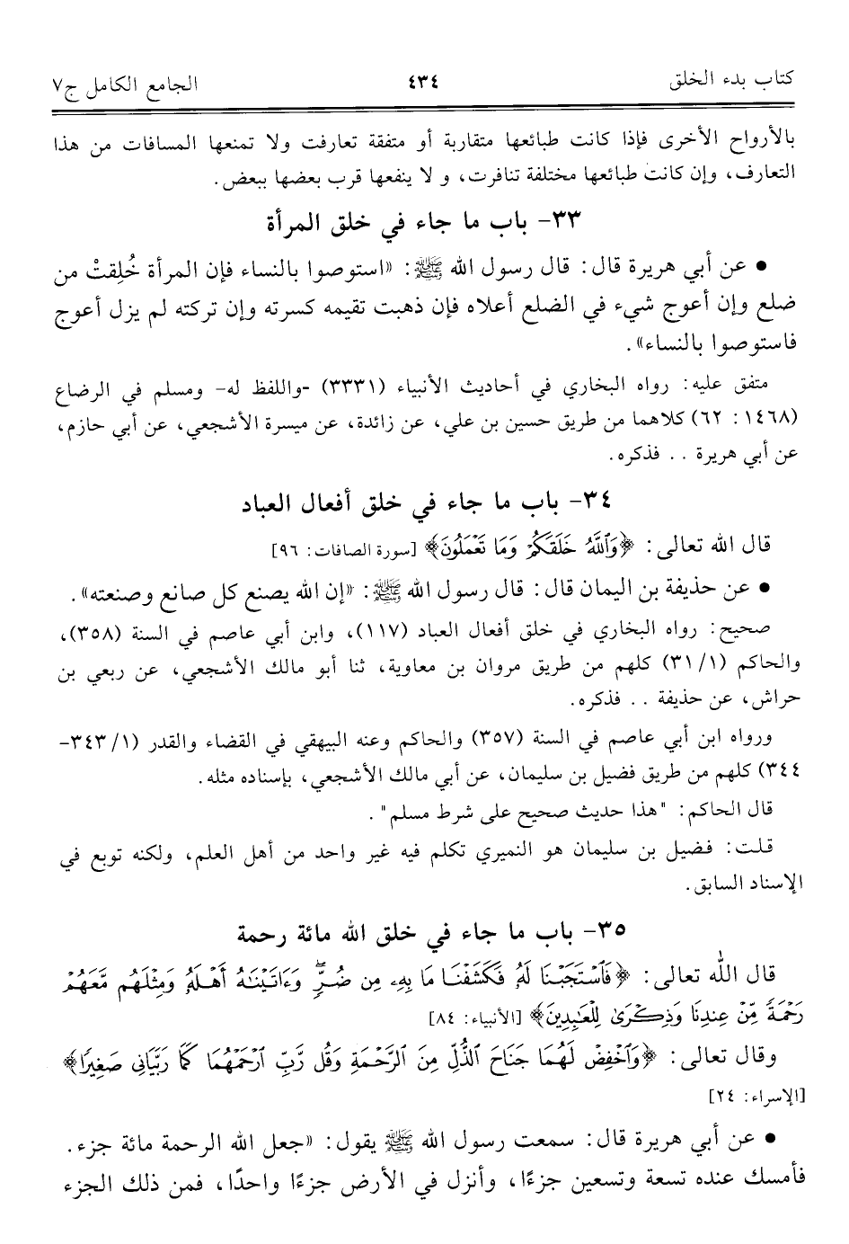 كتاب الجامع الكامل في الحديث الصحيح الشامل المرتب على أبواب الفقه (اسم الجزء: 7)