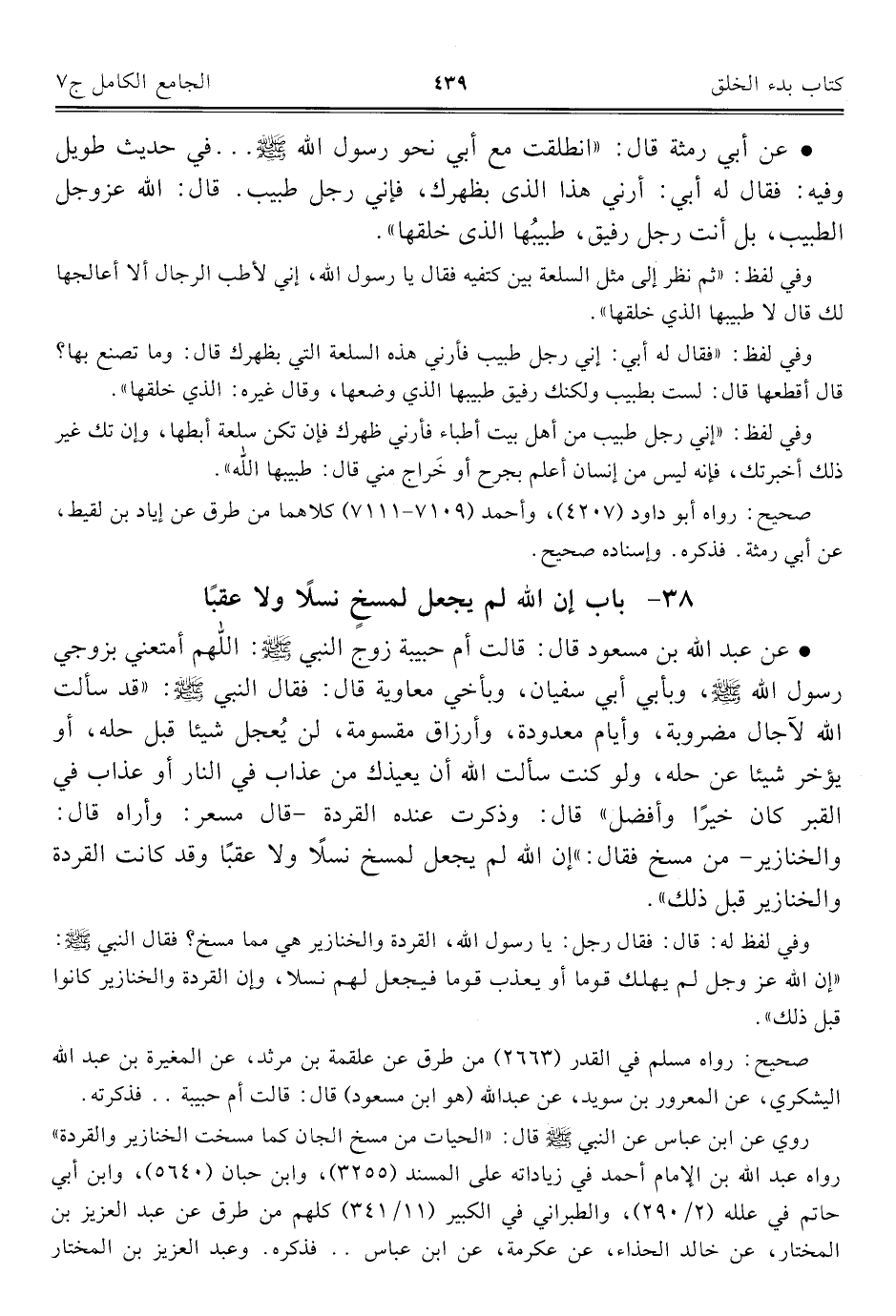 كتاب الجامع الكامل في الحديث الصحيح الشامل المرتب على أبواب الفقه (اسم الجزء: 7)