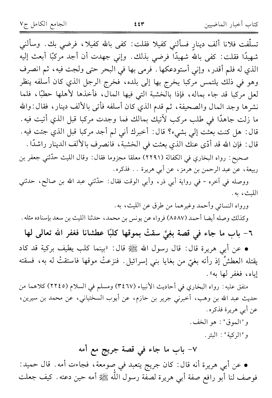 كتاب الجامع الكامل في الحديث الصحيح الشامل المرتب على أبواب الفقه (اسم الجزء: 7)