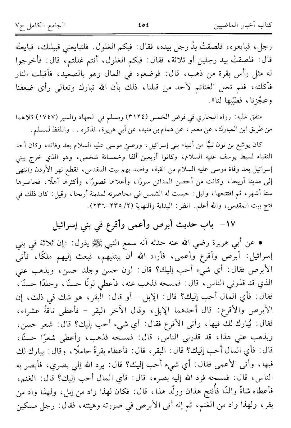 كتاب الجامع الكامل في الحديث الصحيح الشامل المرتب على أبواب الفقه (اسم الجزء: 7)