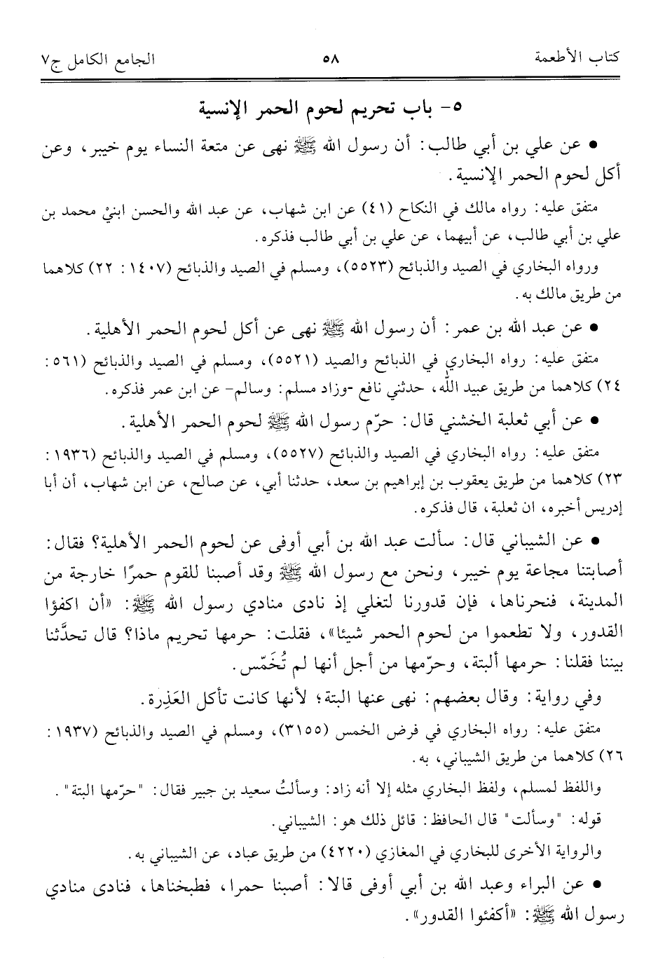 كتاب الجامع الكامل في الحديث الصحيح الشامل المرتب على أبواب الفقه (اسم الجزء: 7)