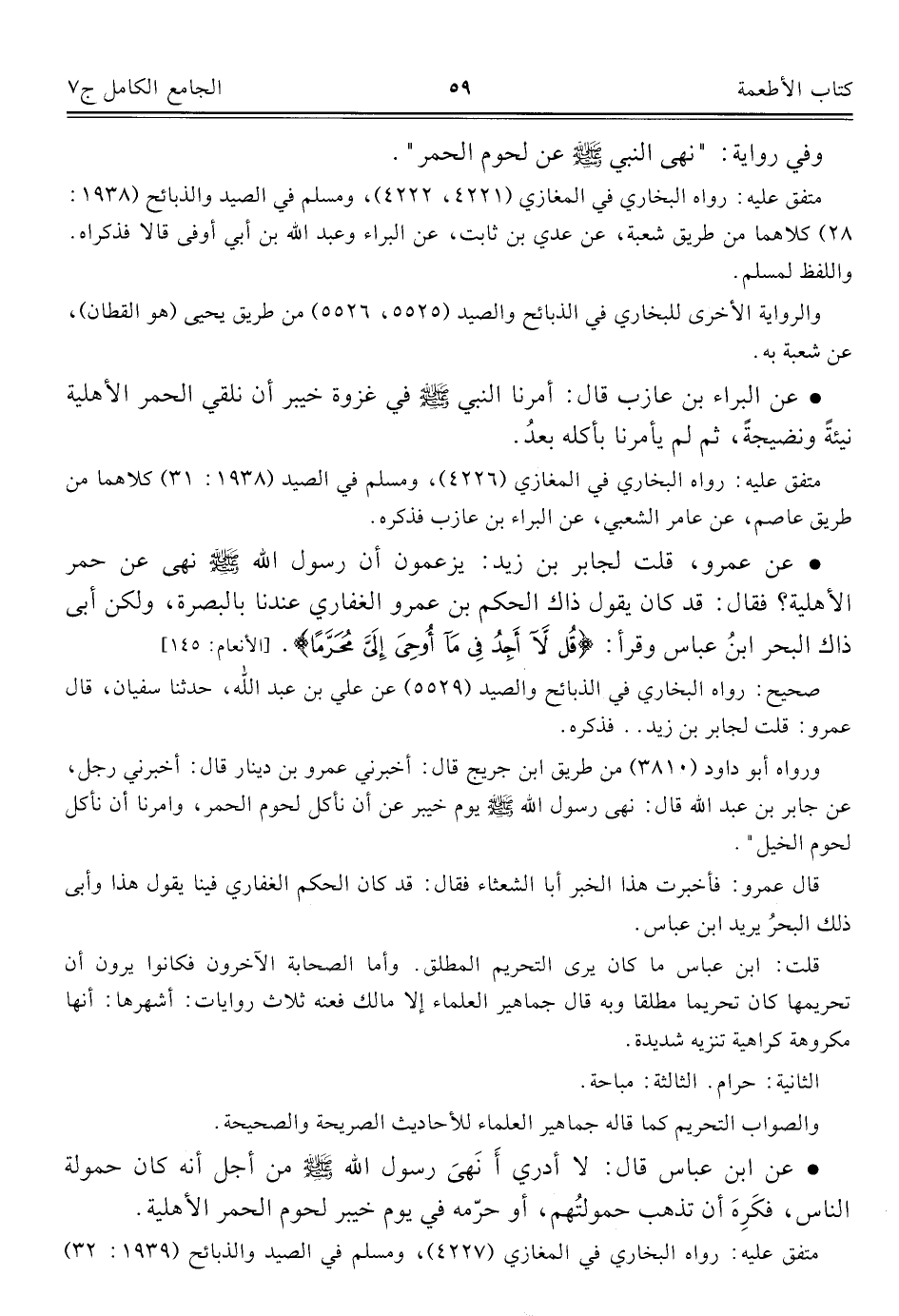 كتاب الجامع الكامل في الحديث الصحيح الشامل المرتب على أبواب الفقه (اسم الجزء: 7)