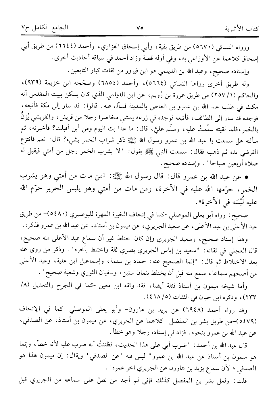 كتاب الجامع الكامل في الحديث الصحيح الشامل المرتب على أبواب الفقه (اسم الجزء: 7)
