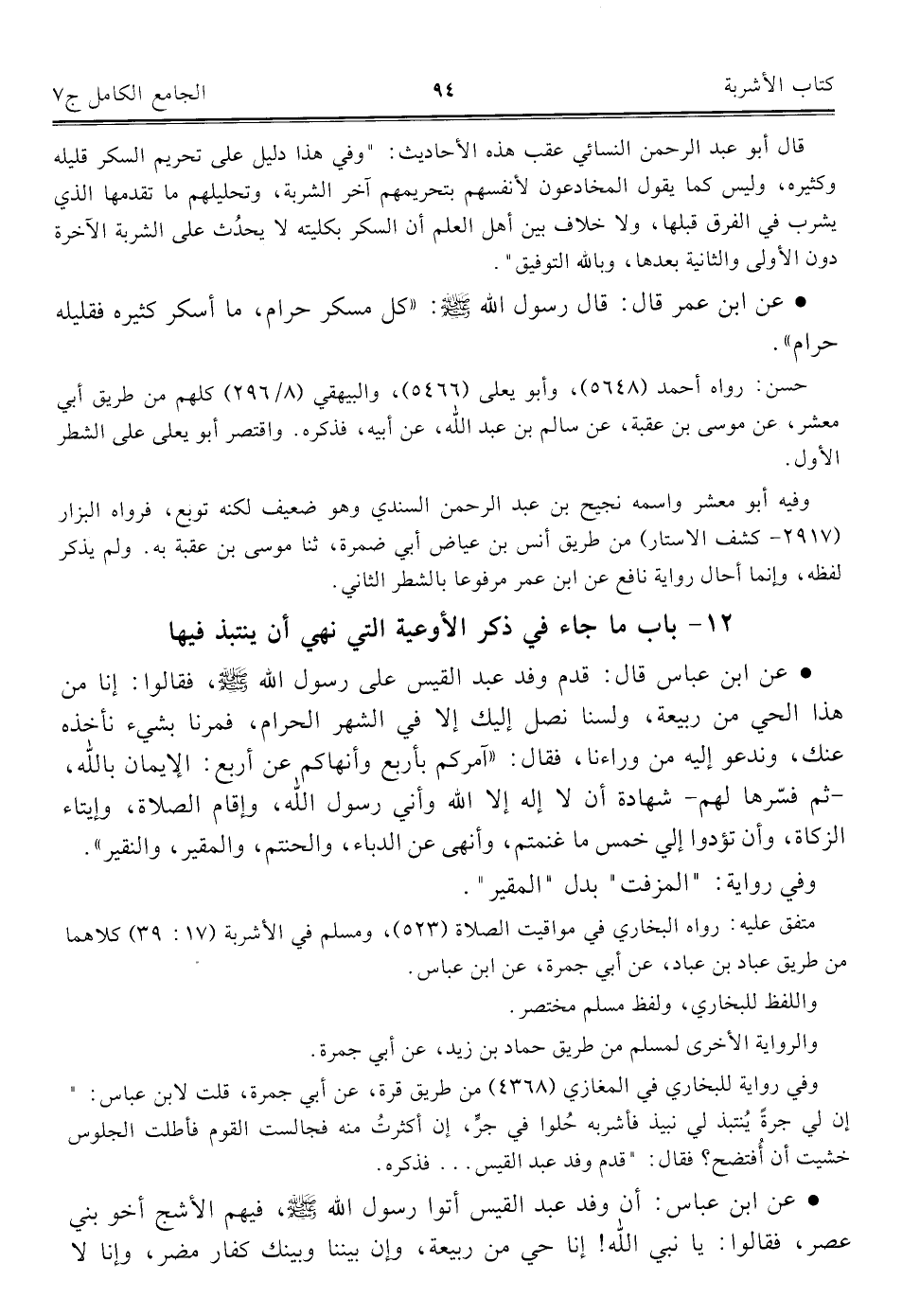 كتاب الجامع الكامل في الحديث الصحيح الشامل المرتب على أبواب الفقه (اسم الجزء: 7)