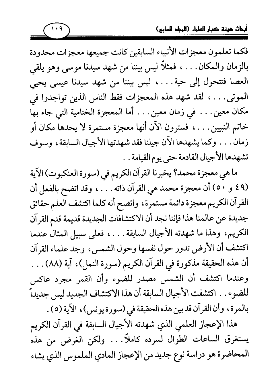هذا الإعجاز العلمي الذي شهدته الأجيال السابقة في القرآن الكريم يستغرق الساعات الطوال لسرده كاملا ... ولكن الغرض من هذه المحاضرة هو دراسة نوع جديد من الإعجاز المادي الملموس الذي يشاء