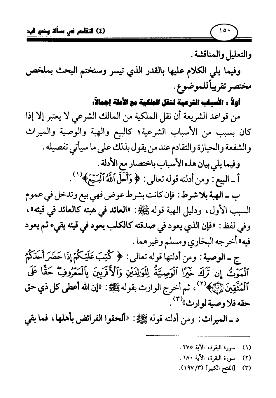 وفيما يلي الكلام عليها بالقدر الذي تيسر وسنختم البحث بملخص مختصر تقريبا للموضوع.