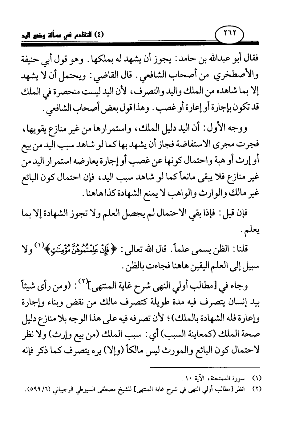 (¬2) انظر [مطالب أولي النهى في شرح غاية المنتهى] للشيخ مصطفى السيوطي الرجيباني (6\599) .