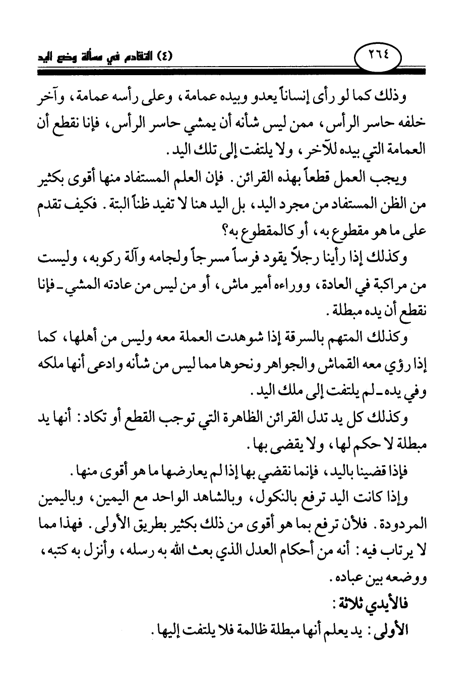 وإذا كانت اليد ترفع بالنكول، وبالشاهد الواحد مع اليمين، وباليمين المردودة. فلأن ترفع بما هو أقوى من ذلك بكثير بطريق الأولى. فهذا مما لا يرتاب فيه: أنه من أحكام العدل الذي بعث الله به رسله، وأنزل به كتبه، ووضعه بين عباده.