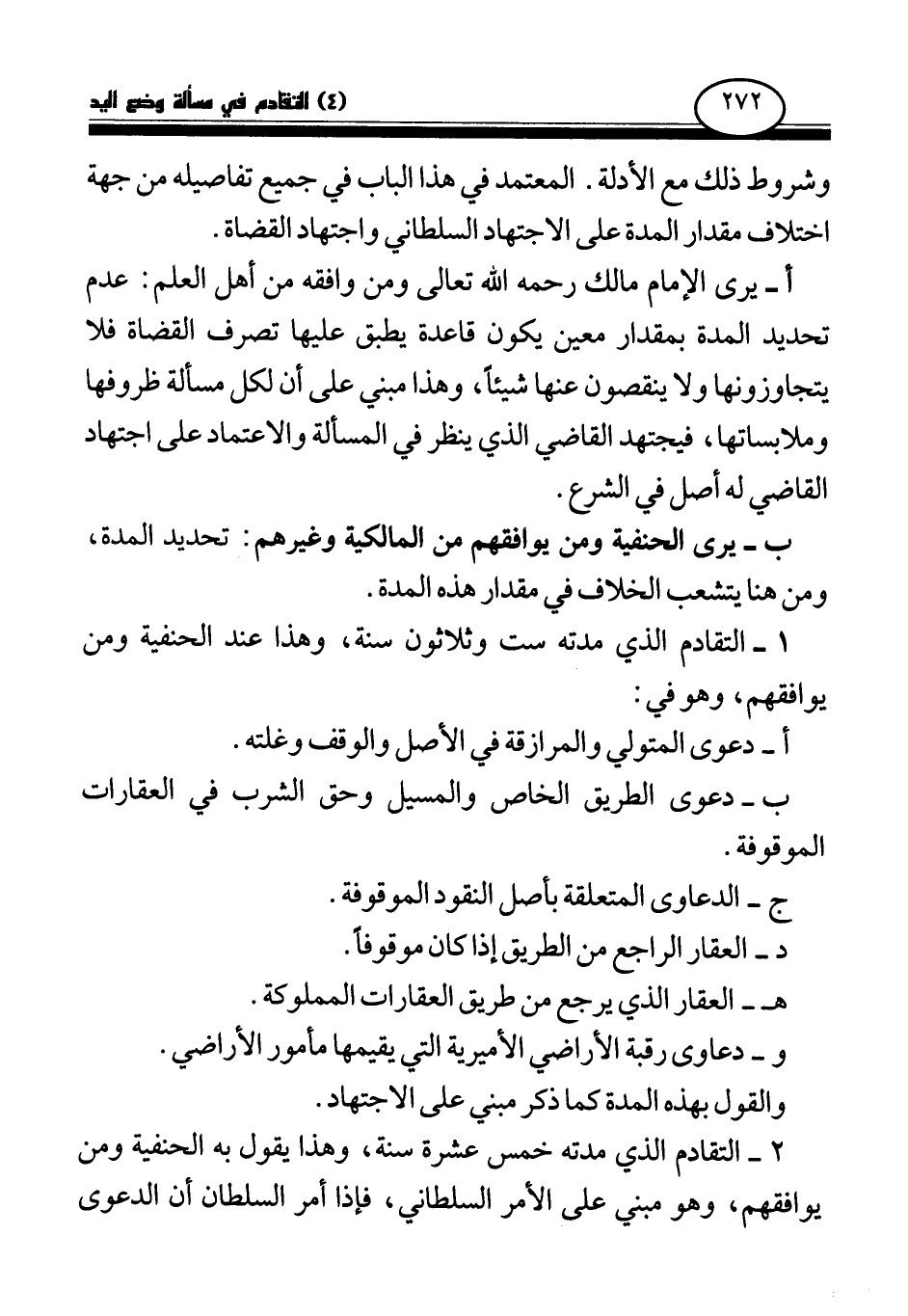 2 - التقادم الذي مدته خمس عشرة سنة، وهذا يقول به الحنفية ومن يوافقهم، وهو مبني على الأمر السلطاني، فإذا أمر السلطان أن الدعوى