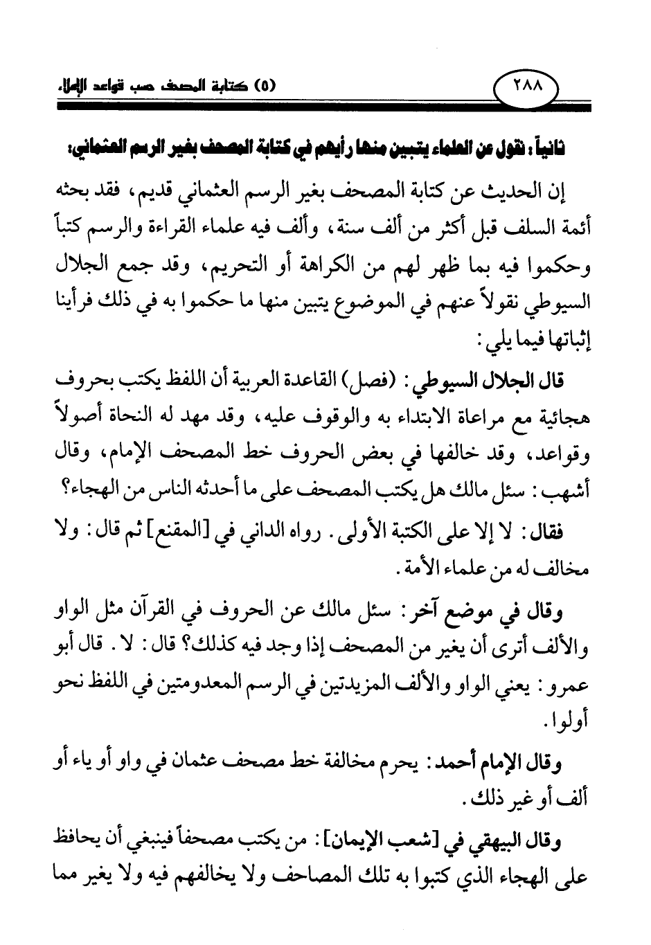 وقال الإمام أحمد: يحرم مخالفة خط مصحف عثمان في واو أو ياء أو ألف أو غير ذلك.