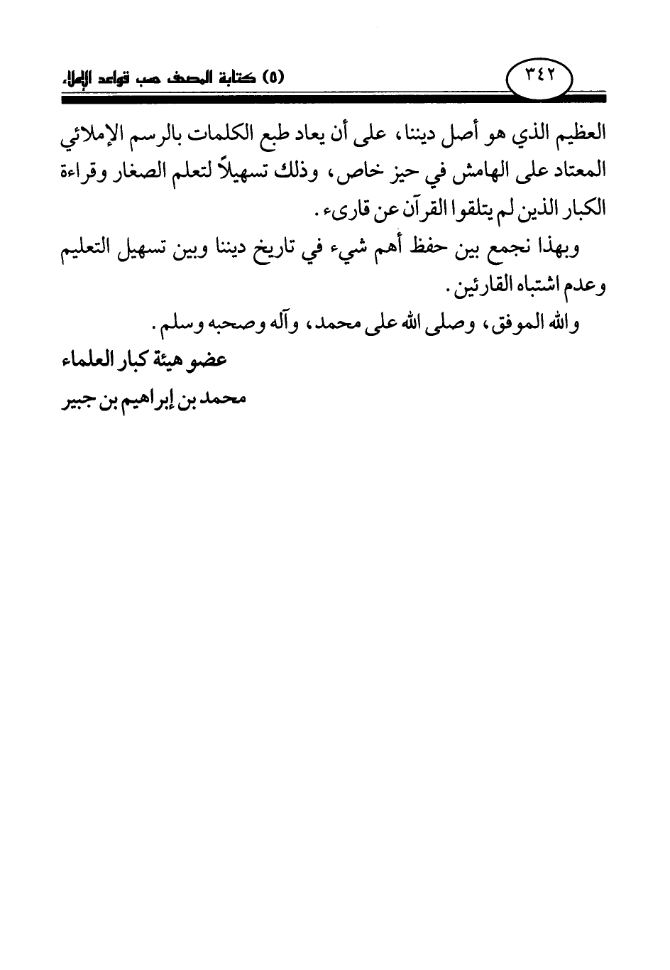 العظيم الذي هو أصل ديننا، على أن يعاد طبع الكلمات بالرسم الإملائي المعتاد على الهامش في حيز خاص، وذلك تسهيلا لتعلم الصغار وقراءة الكبار الذين لم يتلقوا القرآن عن قارئ.
