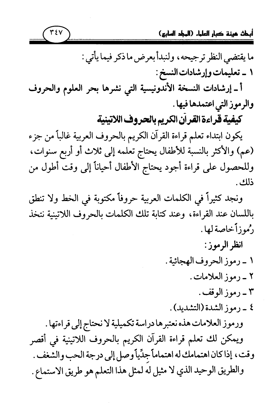 أ- إرشادات النسخة الإندونيسية التي نشرها بحر العلوم والحروف والرموز التي اعتمدها فيها.
