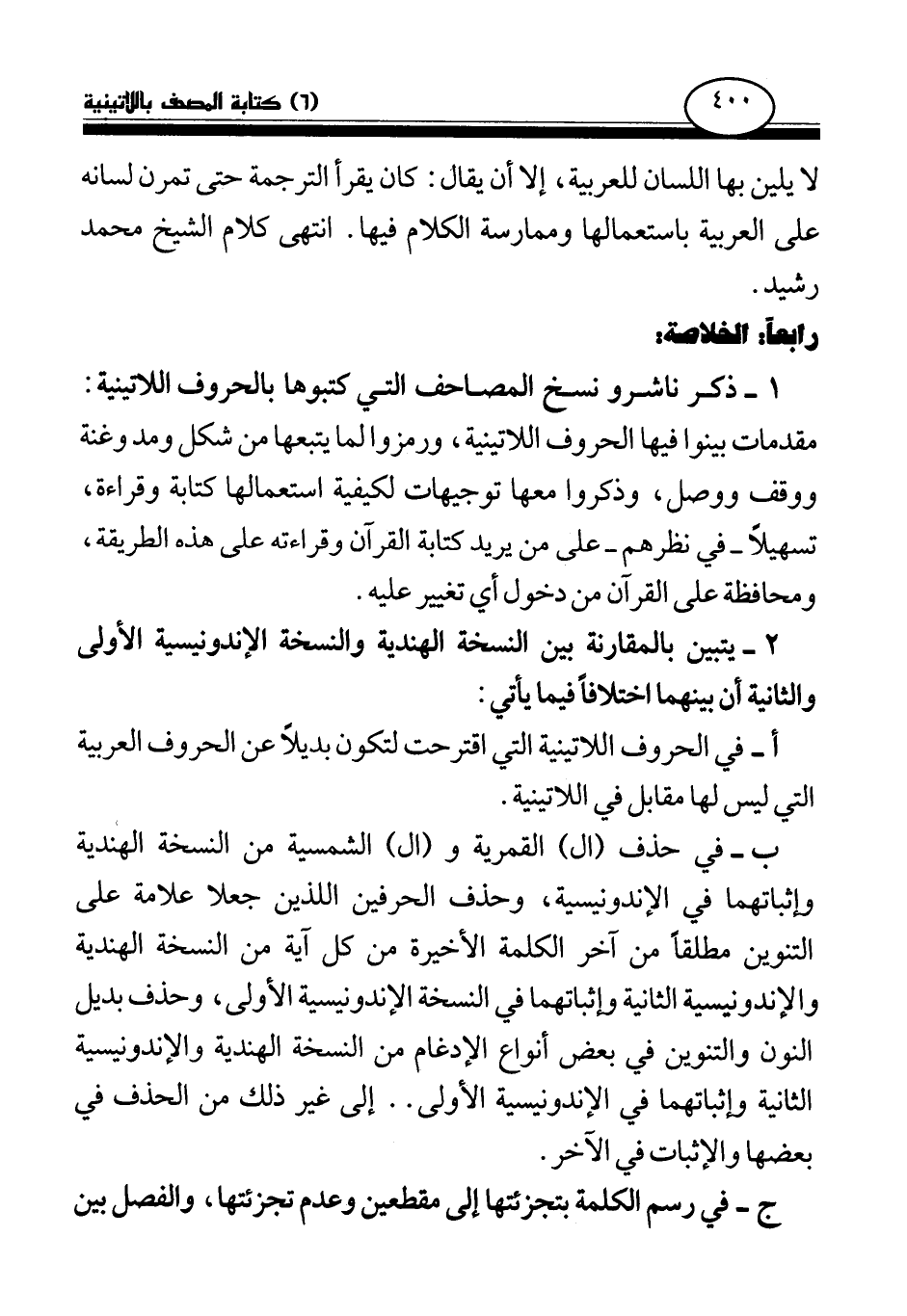لا يلين بها اللسان للعربية، إلا أن يقال: كان يقرأ الترجمة حتى تمرن لسانه على العربية باستعمالها وممارسة الكلام فيها. انتهى كلام الشيخ محمد رشيد.