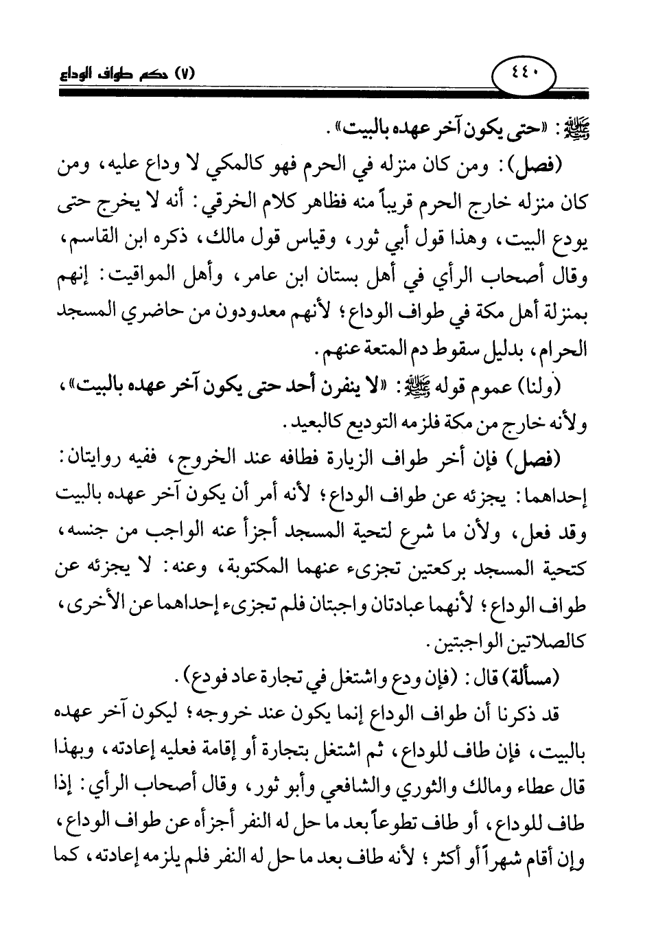 صلى الله عليه وسلم: «حتى يكون آخر عهده بالبيت (¬1) » .